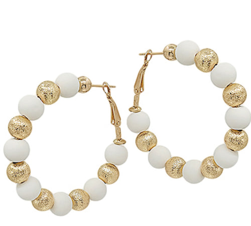 White gold beaded hoop earrings