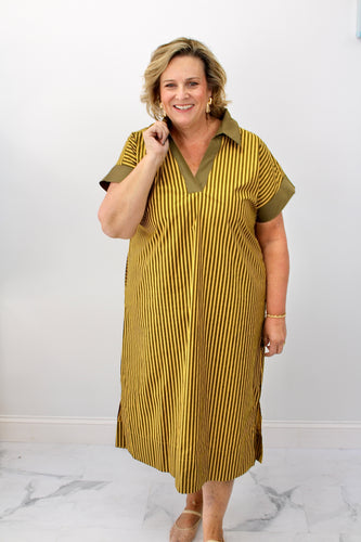 Olive stripe midi dress
