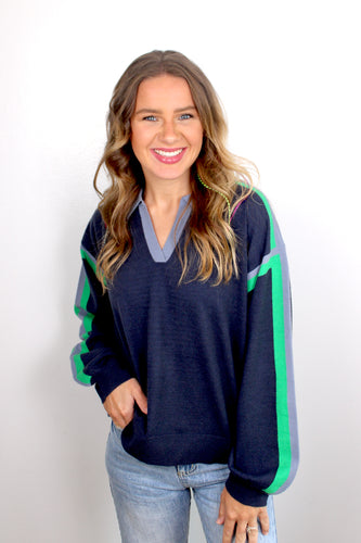Navy green pullover top