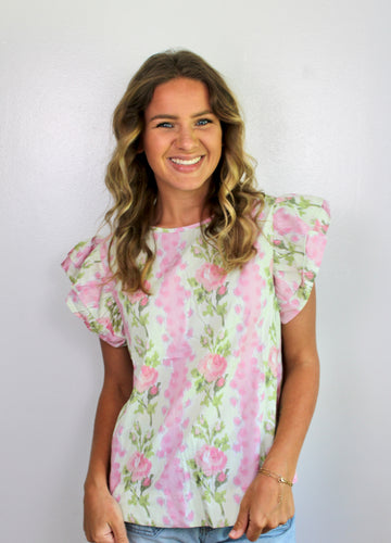 Pink ivory bow tie top- last chance