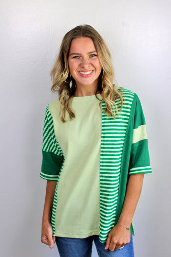 Pink green oversized pullover top