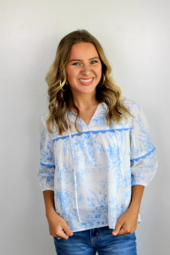 Blue white 3/4 sleeve top