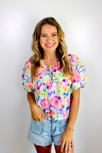 Bright floral tie top
