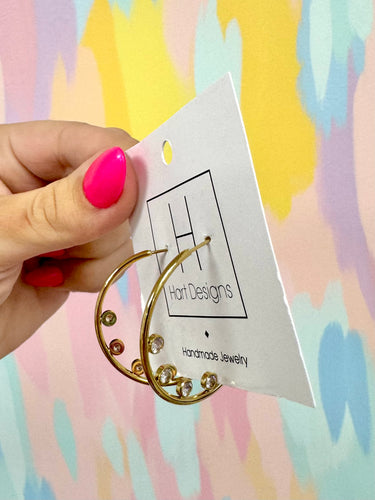 Stoned gold hoop earrings