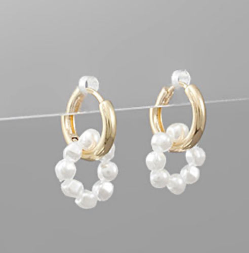 Pearl charm link huggie earrings