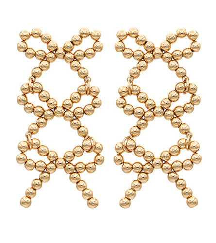 Gold 3 row bow earrings