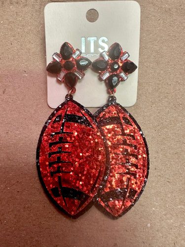 Red black glitter football earrings