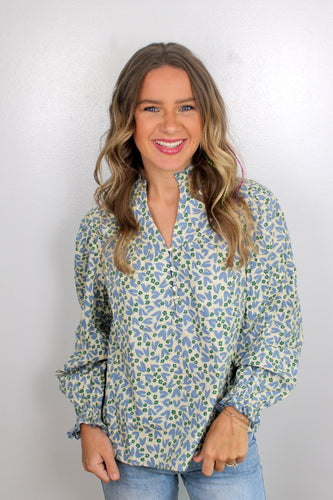 Beige blue floral top