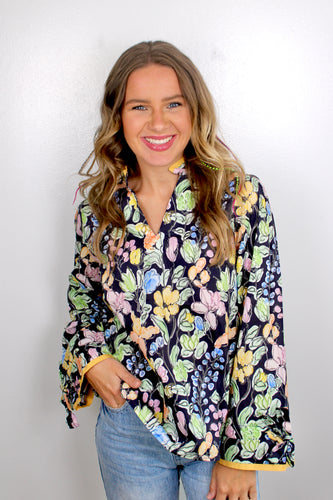 Navy floral multi top
