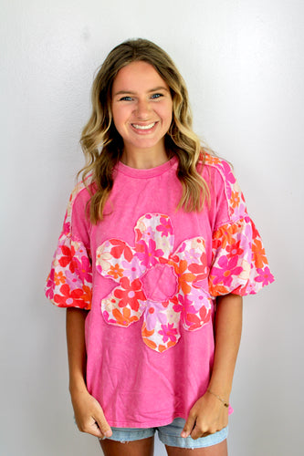 Pink floral ruffle sleeve top