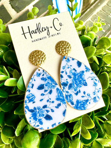 Blue floral tear drop Hadley + co earrings