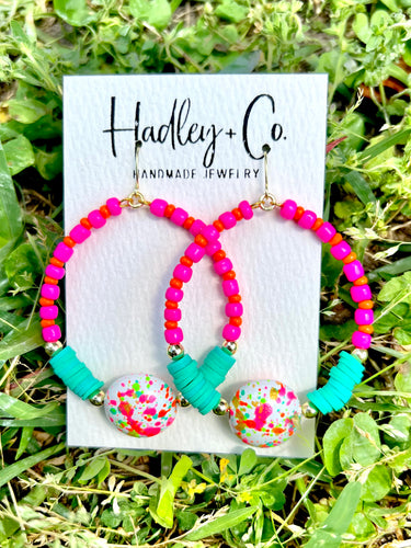 Pink orange teal gold Hadley + co earrings